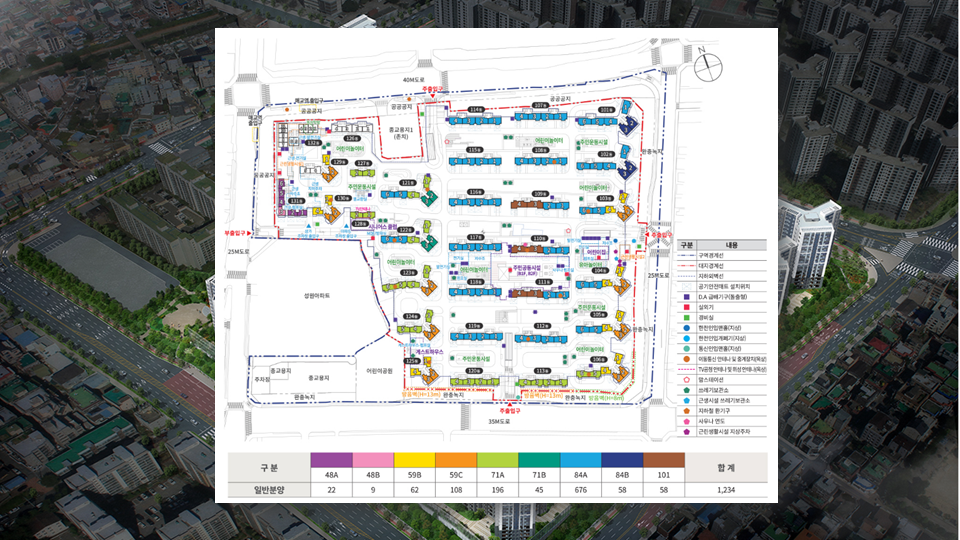 북측 대로변에는 34평형을 배치하고 남측대로에는 30평형, 동측대로에는 24평형을 배치했습니다.